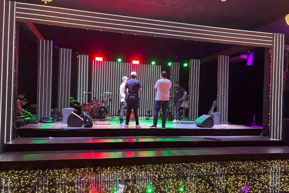 Painéis de LED de última geração, sonorização profissional, iluminação cênica e tudo o que seu evento precisa para impressionar, com pontualidade, excelência e sofisticação.