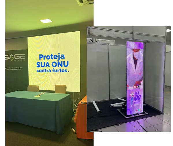 Destaque seu evento com painéis de LED de alta resolução, brilho impressionante e formatos personalizáveis. Ideal para apresentações impactantes, vídeos, transmissões ao vivo e cenários digitais sofisticados. Nossos painéis garantem nitidez, fluidez e uma experiência visual memorável.